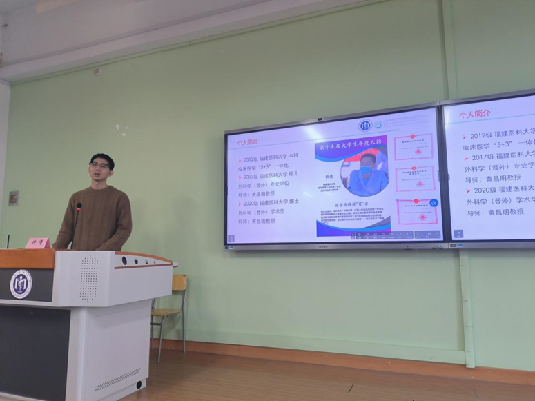 为深入学习贯彻习近平新时代中国特色社会主义思想和党的二十大精神,聚焦立德树人根本任务,凝聚校友力量,11月19日,麻将胡了 邀请福建医科大学2023届外科学博士毕业生钟情学长,为2023级新生进行经验分享。